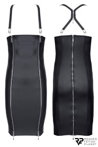 This sexy dress is split with 3 zippers, two in front and one in the back. It is complemented with straps clipped by removable chromised attachments.