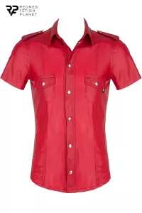 The Carlo shirt is made of red color elastic wetlook fabric in Europe by the brand Regnes Fetish. This model is a perfect classic cutting alloy, military, while integrating more modern and fashionable details. This model was made to please fans of fetish who will recognize some details imagined for this community.