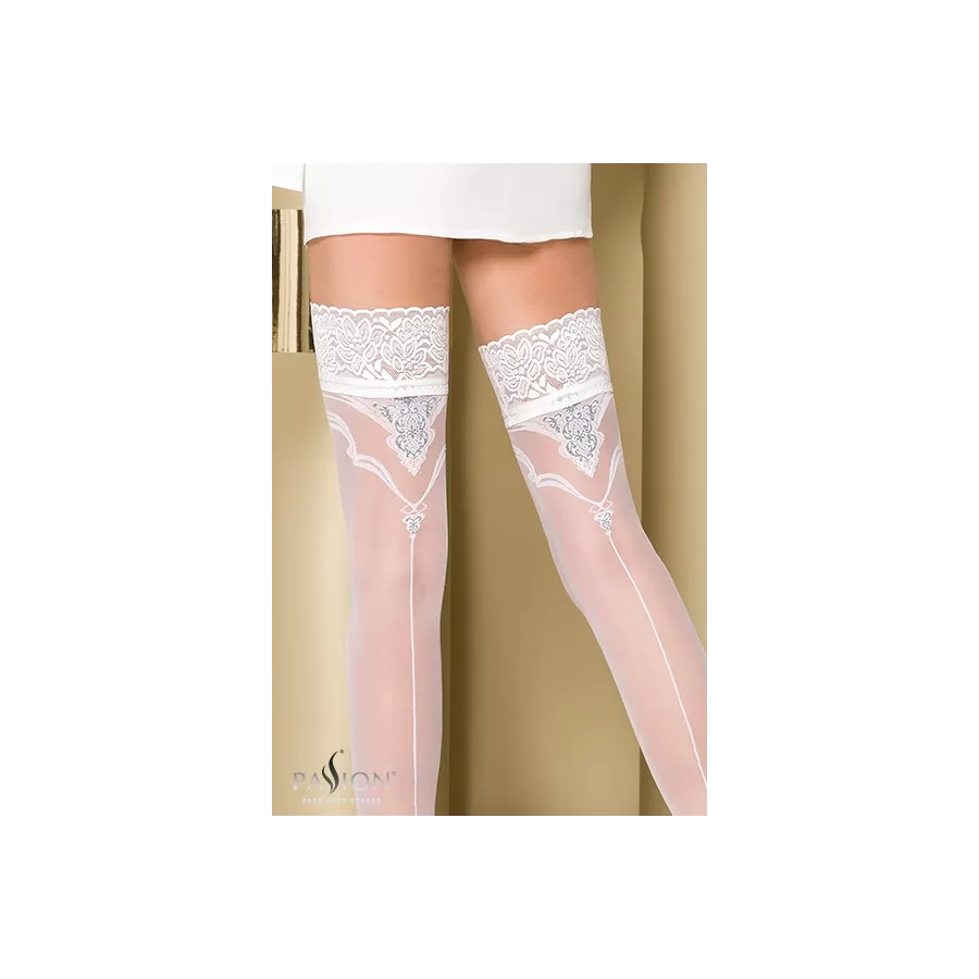 Ces bas d'un blanc virginal, en Lycra 20 deniers très doux au toucher, sont un véritable apparat sur vos jambes.