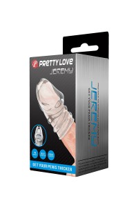 Sexy et transparente, la gaine d'extension de pénis Jérémy, de la marque Pretty Love, est fabriquée en TPR doux et confortable. Elle est extensible et s’adapte à toutes les dimensions de verges.