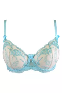 Ce soutien-gorge bleu azur en dentelle de la marque Axami sublime votre poitrine tout en vous assurant un maintien optimal et un confort incomparable.