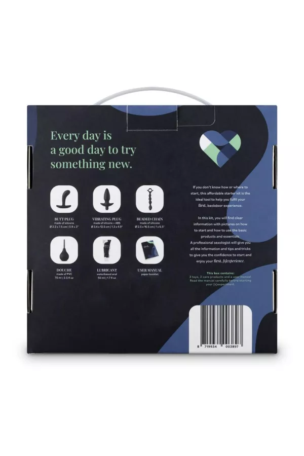 Progettato per i principianti uomini, donne e coppie, la scatola "Prima Backdoor Experience" del marchio Loveboxxx, è una scatola contenente 4 giocattoli sessuali, 1 lubrificante anale e 1 guida, che permette di iniziare bene nel mondo del piacere anale.