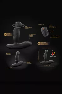 Caratteristiche : - Stimolatore prostatico a distanza - Stimolo della prostata e del perineo - No- Stimolazione obsoleta: 16 vibrazioni - Punto di stimolazione P: 3 modalità di rotazione - Funzione di riscaldamento - Funzionamento silenzioso - Materiale: Silicone ultra morbido - Acqua - Dimensioni: 11,2 grande x 9 cm di altezza, diametro max 2,68 cm - ricaricabile tramite USB utilizzando il cavo fornito - Tempo di carica: 2h / Autonomia: 1h - Non contiene ftalato - Borsa di stoccaggio fornita - Marca: Dorcel